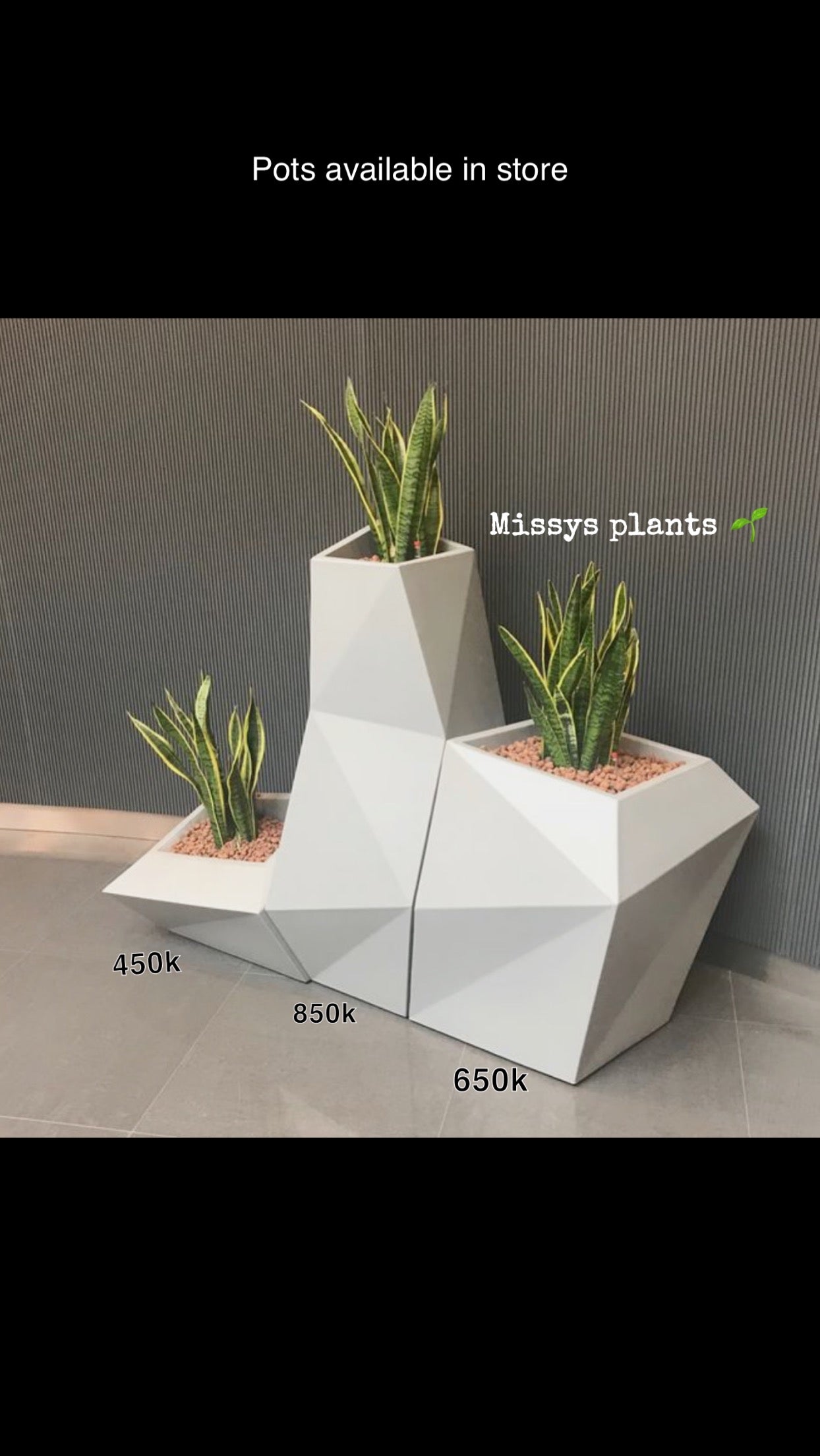 Pots with respective prices on picture